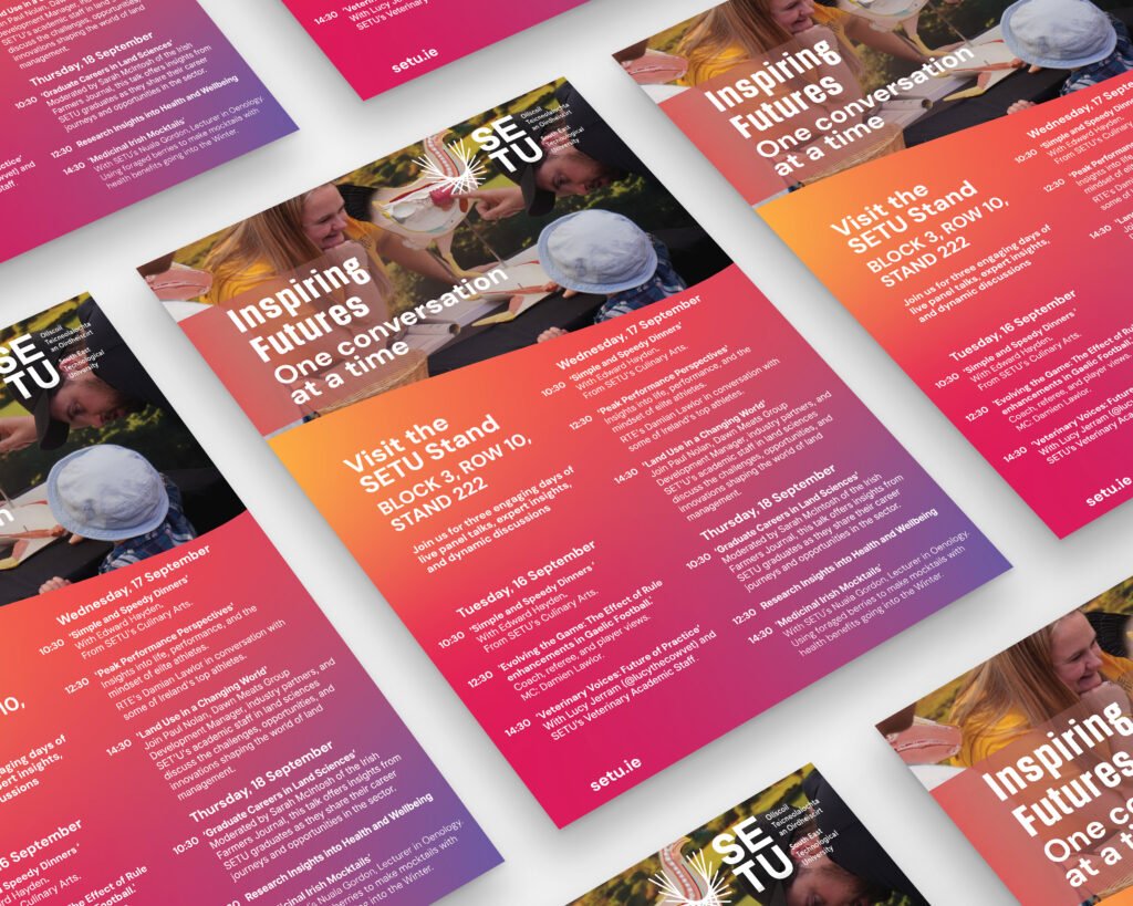 During my internship, I was responsible for creating a variety of promotional materials for different events at SETU. My work included designing advertisements for newspapers, social media campaigns, and digital display screens, as well as producing brochures, posters, and conference materials.
